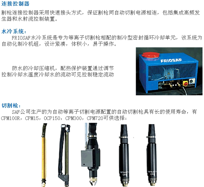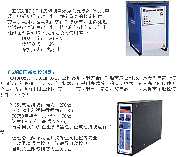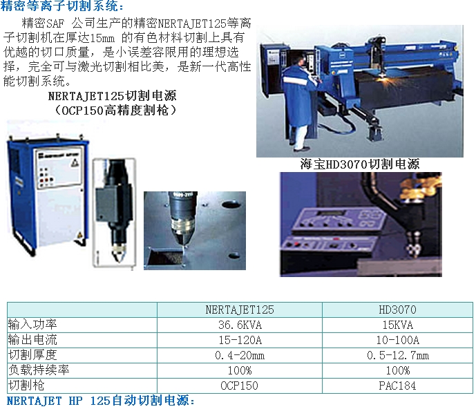 SAF公司的PLASMATOME系列切割機是為氧和等離子切割設(shè)計的,整套設(shè)備的設(shè)計由既懂等離子技術(shù)又能應(yīng)用等離子工藝的SAF公司完成。PLAMATOME系列切割機安裝PO251工具架,升降行程250MM,該系列裝置切割范圍為:0.5MM—150MM,選擇如下:切割電源:從單割炬的NERTAJET HP125到雙割炬的NERTAJET HP600