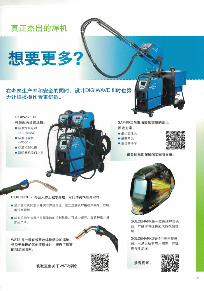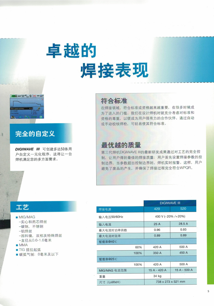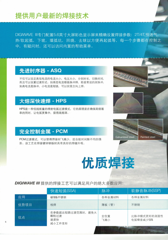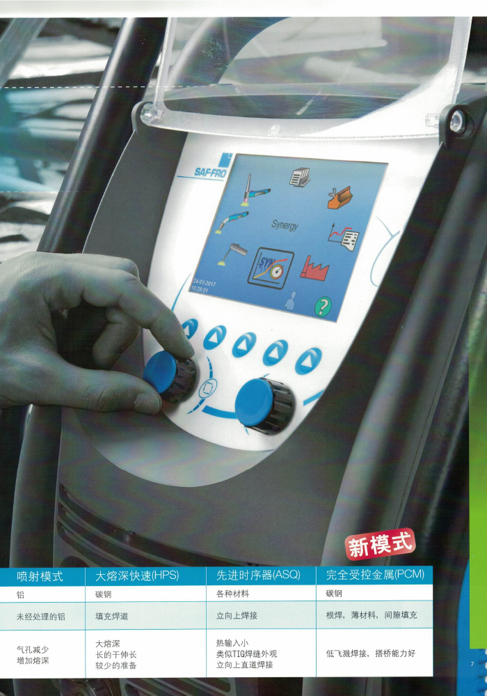 真正實(shí)現(xiàn)一個脈沖過渡一個熔滴,該專利工藝采用電弧射流型突變技術(shù),焊接電流以肯定的頻率產(chǎn)生突變,從而引起焊接熔池強(qiáng)烈攪拌,使氫在熔池凝固過程中充分溢出,因此很大地減少和消除氣孔地產(chǎn)生。 SAF 分司的專利射流過渡技術(shù)之于傳統(tǒng)的 MIG 焊射流過渡更具有廣泛的應(yīng)用性,并能實(shí)現(xiàn)全位置的焊接,在汽車、造船、高速列車、航天航空及壓力容器等制造領(lǐng)域得到廣泛應(yīng)用。 SAFMIG330TRI/480TRI 脈沖熔化極氣保護(hù)焊機(jī)為 16 位微處理器閉環(huán)數(shù)字控制晶體管暫斬波電源、焊機(jī)內(nèi)焊接專家系統(tǒng),各種母材,焊絲,氣體組合焊接程序達(dá) 100 多組,協(xié)合式單旋鈕調(diào)節(jié),具有熱起弧功能,此外還設(shè)置了“雙脈沖”功能,適用于鋁及鋁合金,不銹鋼,碳鋼及低合金鋼的焊接。