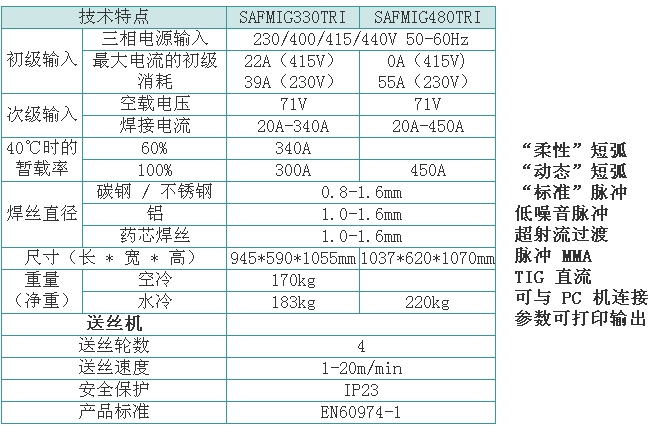 數字化雙脈沖鋁焊接設備,在汽車、造船、高速列車、航天航空及壓力容器等制造領域得到廣泛應用。 SAFMIG330TRI/480TRI 脈沖熔化極氣保護焊機為 16 位微處理器閉環(huán)數字控制晶體管暫斬波電源、焊機內焊接專家系統(tǒng),各種母材,焊絲,氣體組合焊接程序達 100 多組,協(xié)合式單旋鈕調節(jié),具有熱起弧功能,此外還設置了“雙脈沖”功能,適用于鋁及鋁合金,不銹鋼,碳鋼及低合金鋼的焊接。
