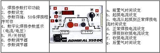 ADMIRAL350DC是簡便、穩(wěn)固、內置水冷的新一代數(shù)字化氬弧焊接設備。氣電一體式焊**接頭,焊接參數(shù)程序設置并可儲存50條焊接程序: