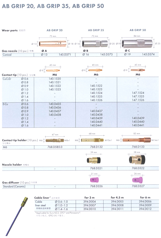 賓采爾二氧化碳焊槍配件
