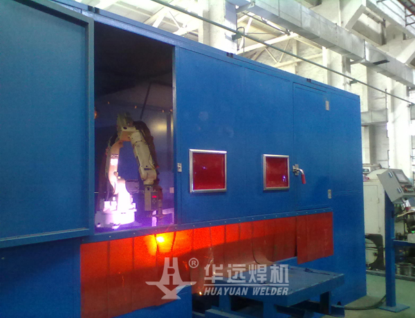布局方式:單工位布局,機器人座式安裝,四周設置全封閉式防護罩,防止無關人員在工作時間進入焊接區(qū)域。