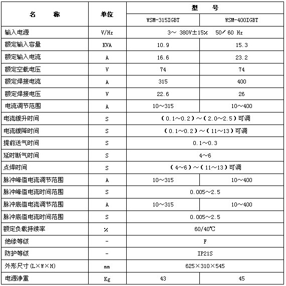 上一篇:WSE-315、500IGBT逆變式交、直流脈沖氬弧焊機 下一篇:WS-315、400、500IGBT逆變式手工直流、氬弧兩用焊機