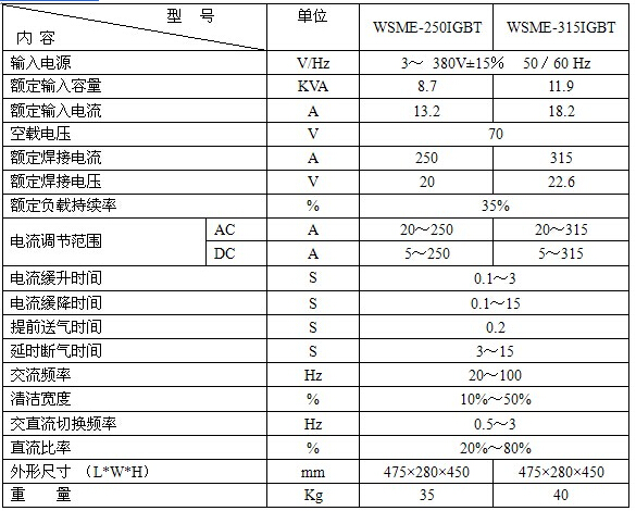 WSME-250/315IGBT逆變式交直流脈沖手工鎢極氬弧焊機(jī)