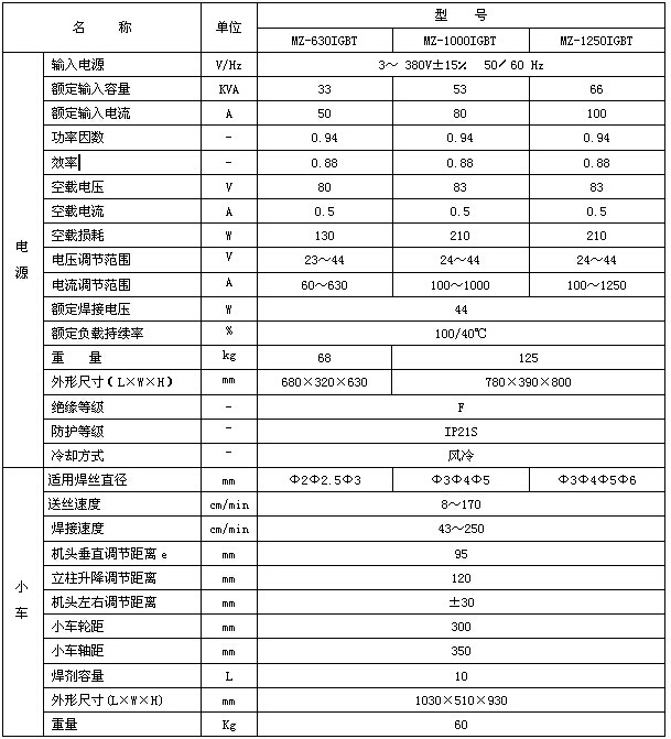 MZ-630、1000、1250IGBT逆變式自動埋弧焊機