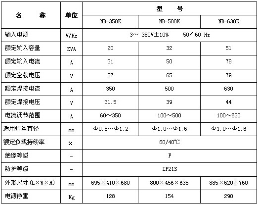 NB-350、500、630K可控硅整流氣體保護(hù)焊機