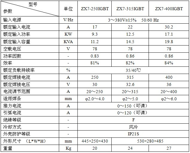 保定ZX7-250/315/400IGBT逆變式直流弧焊機