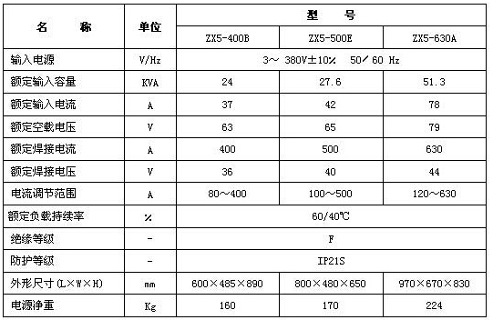 ZX5-400B、500E、630A 可控硅整流手工電弧焊機