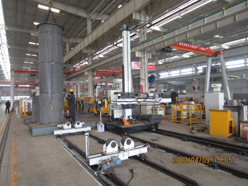該設(shè)備主要用于筒體的環(huán)縫、直縫、環(huán)形角焊縫的焊接,通過觸摸屏用戶界面編程,可以實(shí)現(xiàn)其他類似工件的焊接。該設(shè)備主要由操作機(jī)、移動(dòng)臺(tái)車、變位機(jī)、滾輪架、夾具、焊接系統(tǒng)、控制系統(tǒng)等組成。